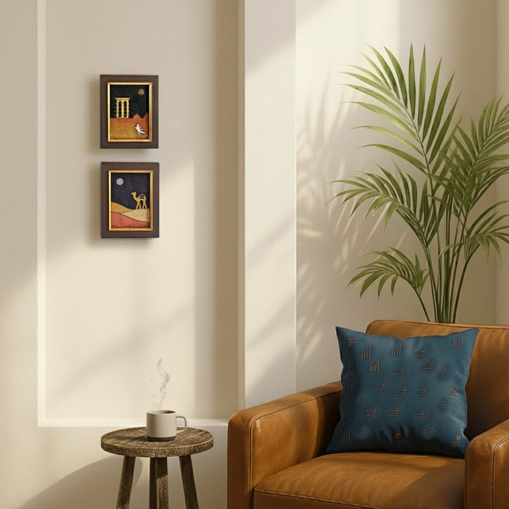 كل إطار مزود بزجاج واقٍ، مما يجعله مناسبًا للعرض على الجدران، ويضيف مزيجًا متوازنًا من الطابع التراثي والأناقة العصرية على أي مكان.